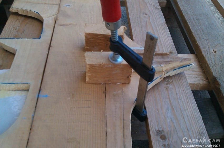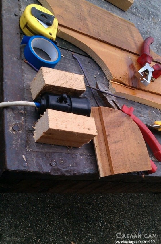 На клей крепим бруски, также фиксируем лампу и патрон.