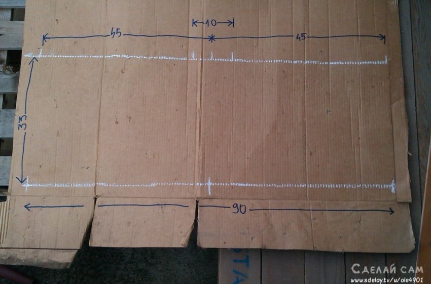 Начинаем как всегда с макета. На куске картона рисуем мышь. В моем случае, сгодился кусок картона от коробки. Размеры макета - 33 х 90 см.