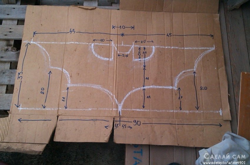 Рисуем мелом, что бы было легко делать правки, коих будет не мало. Ведь рисунок должен быть симметричны.