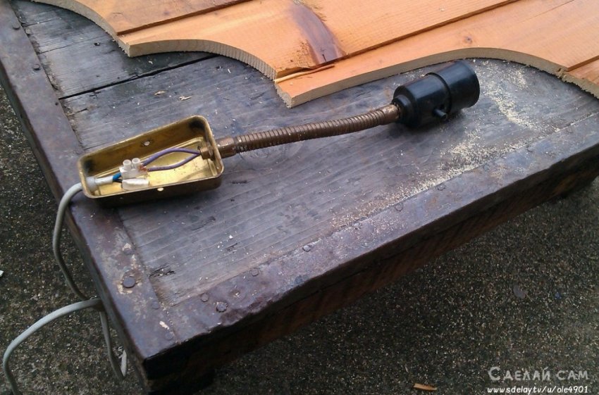 Лампа у меня была готова, с выключателем и розеткой от старой лампы, которая была успешно разбита во время переезда.