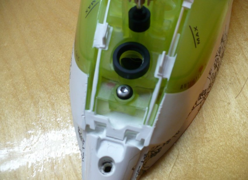 --СОЕДЕНИЛ верхнюю и нижнюю(пластиковые) часть утюга и затянул винтами(перед этим убедится что все механизмы на месте).