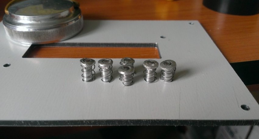 Нашел пружинку и пооткусывал пружинки нужной длины. Пружинки нужны чтобы толкатели кнопок не вываливались из экрана и не болтались.