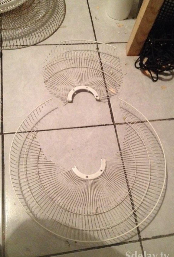 С помощью кусачек вырежьте круг из защитной решетки большого вентилятора, чтобы ее радиус был больше воздуховода где-то на полдюйма. Обогните проволоку вокруг воздуховода. Затем горячим клеем приклейте защиту спереди и сзади.