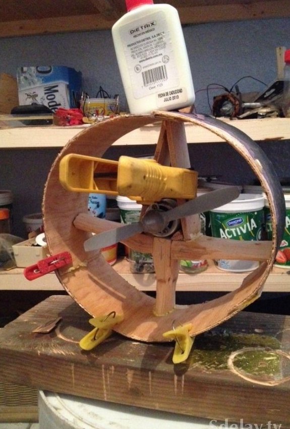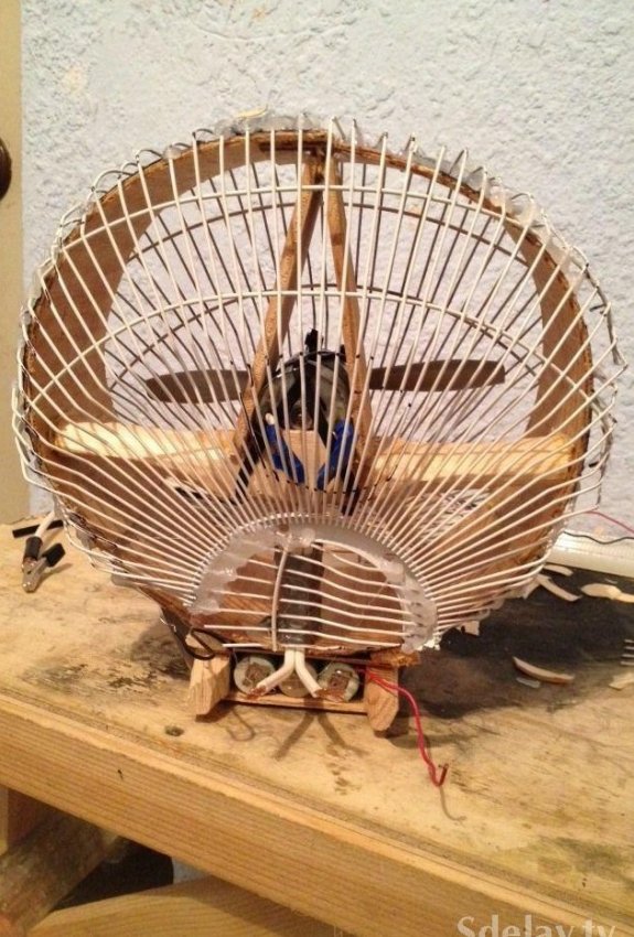 Можно взять 18-вольтовый двигатель электродрели, пропеллер радиоуправляемого самолета и батарею с ноутбука. 4 вольта – это оптимальный вариант, к тому же не слишком шумный при работе. При 12 вольтах устройство будет сверхмощным, громким и будет "дребезжать" (за счет вибрации) по столу.