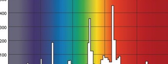 Выраженные пики на 450 и 550нм, с провалом около 500, и после 600нм. Соответственно, со светодиодным освещением цвета также получатся искаженными.