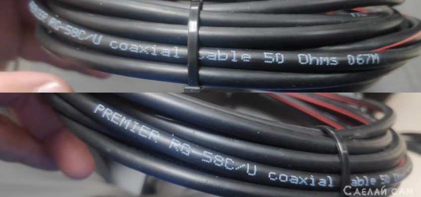 Коаксиальный кабель (на последнем фото имеется маркировка), можно закрепить как показано на фото, а можно снизу пластин.