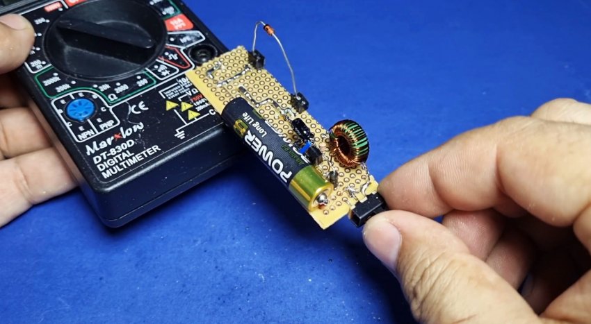 Приставка состоит из высокочастотного преобразователя. Катушка состоит из 20 витков у обоих обмоток. Если генератор не запустится, то поменяйте контакты одной из обмоток.