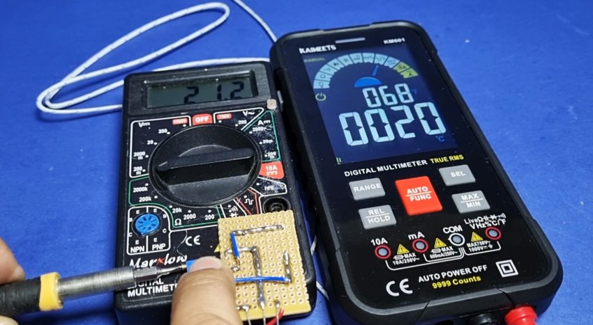 Микросхема LM35DZ имеет крайне простое включение. Питается приставка от 9 В.