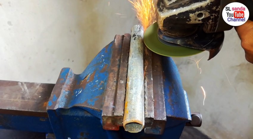 Затем берем отрезок полудюймовой трубы длиной 16 см, и распиливаем ее вдоль пополам.