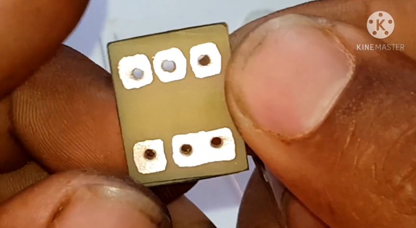 Печатная плата имеет квадратную форму со стороной около 20 мм и скругленными углами. Изготавливается из гетинакса с односторонним фольгированием, кромки облагораживаются напильником. Металлизация отверстий не требуется.