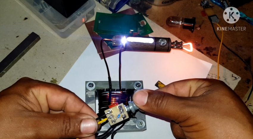 Включаем к разрыв цепи трансформатора выжигателя.