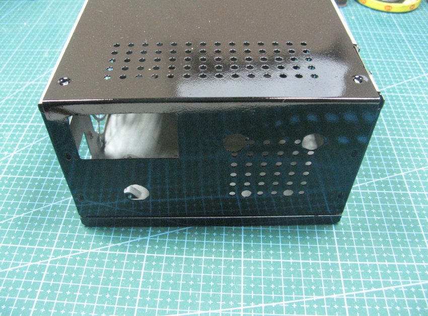 Разметил и вырезал все отверстия. Покрасил его из баллончика. Красил чем было, еле хватило на корпус. Не ней видны все отпечатки.
