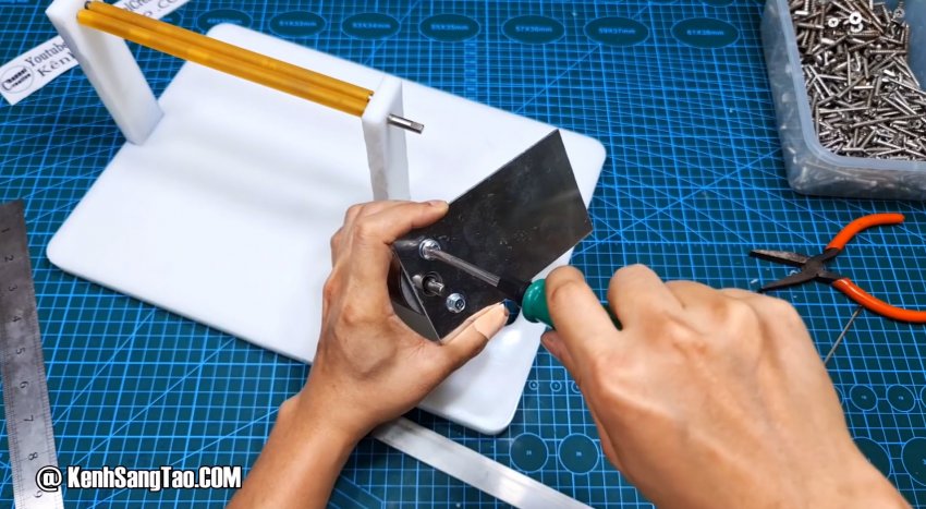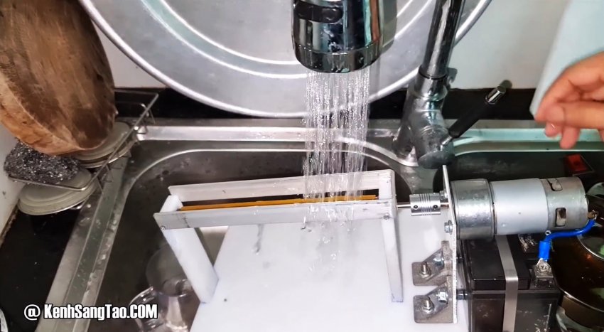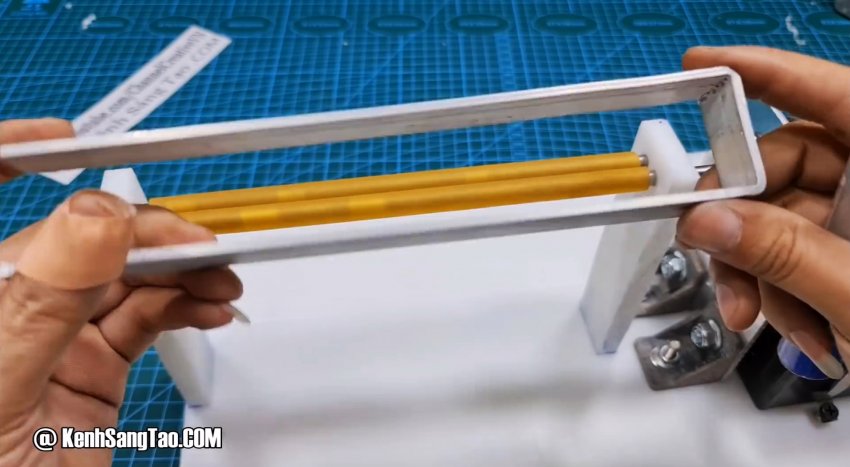 Из алюминиевой полосы выгибается П-образный бортик для вальцов, и прикручивается к стойкам. Все, устройство готово к использованию.