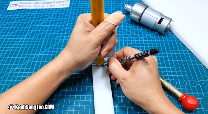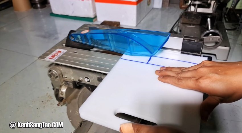 Из пластиковой разделочной доски выпиливается 2 рейки 35х130 мм. Это будут стойки для вальцов.
