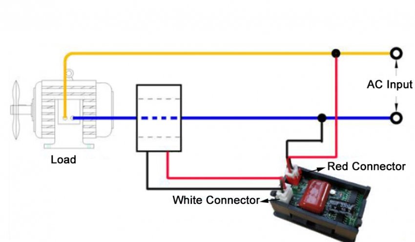 Один провод от амперметра вольтметра присоединится к проводу питания. Затем их скрутка зажимается в клемме розетки.