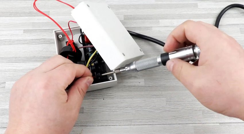 Затем остается только закрепить неподвижно катушку от прибора, и закрыть коробку.