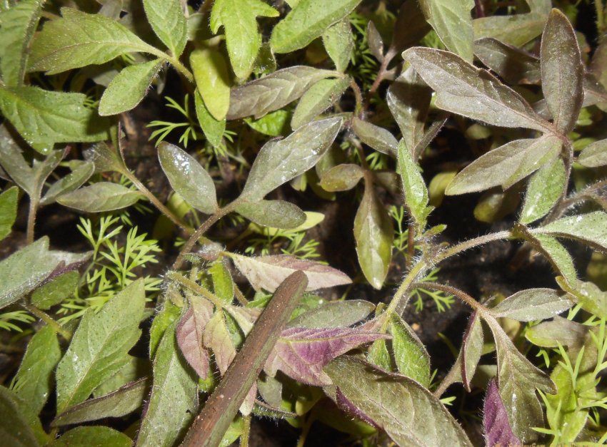 Причины: недостаток фосфора и низкая температура в помещении для рассады