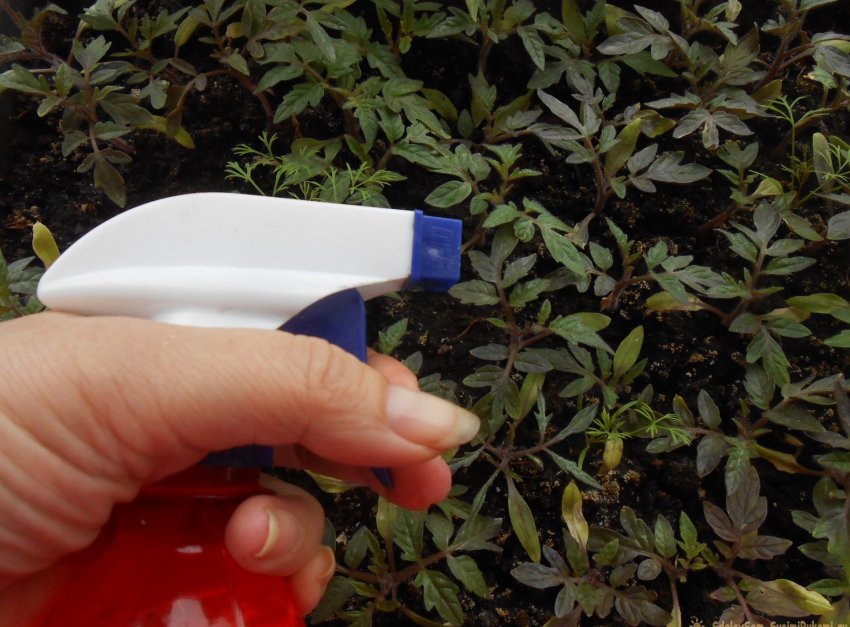 Быстро насытить ткани растений фосфором и другими полезными веществами помогает листовая подкормка. Приготовленный согласно инструкции на упаковке питательный раствор используют для орошения рассады по листьям из комнатного пульверизатора.