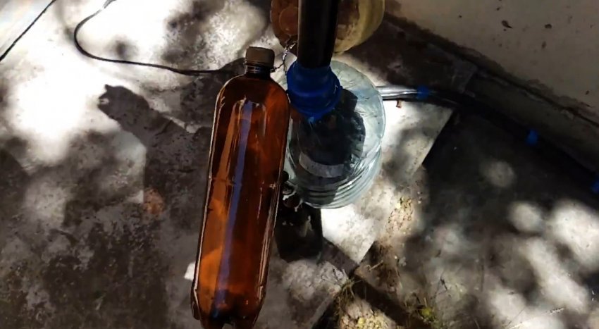 Через крышечку изнутри пропускается вилка от провода питания насоса помещенного в бутыль.