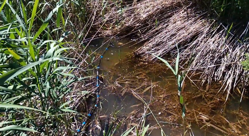 Благодаря грузу и поплавкам, он будет находиться в плавающем полулежащем состоянии. Купол из бутыли защитит его от погружения в ил, а также укроет от веток на дне и растительности, даже в самом заросшем болотце.