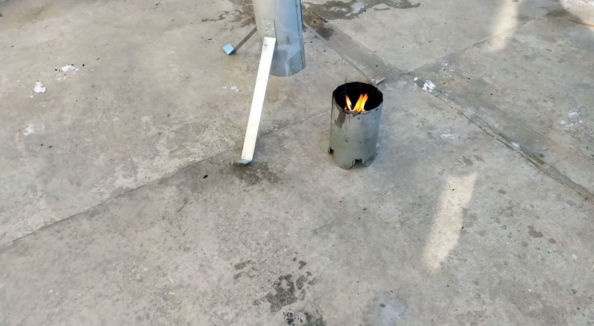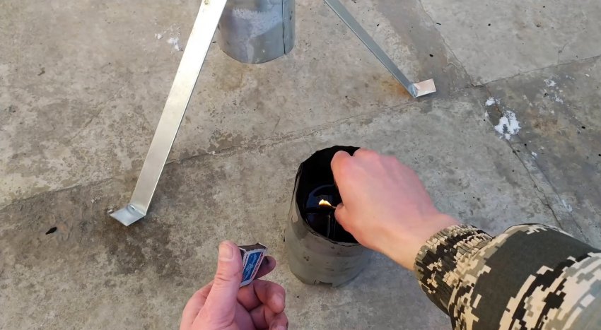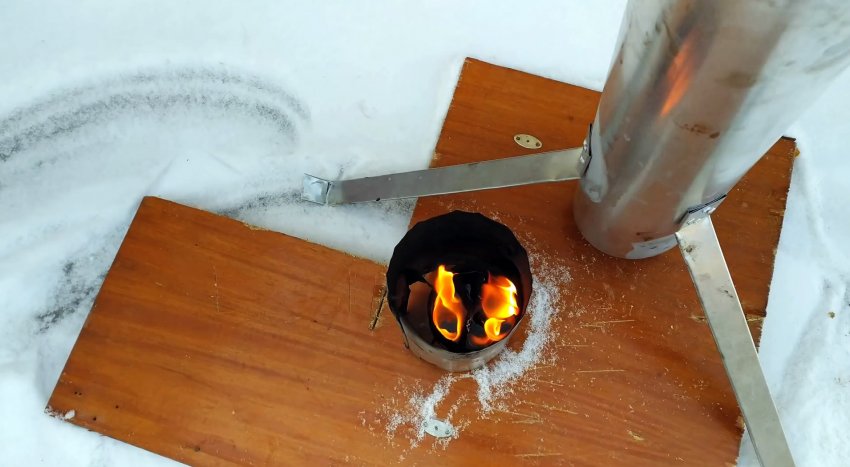 Полученные при этом просветы обеспечат приток воздуха. При розжиге нужно будет сначала вставить банку в нижнюю ступень, и после этого зажигать фитиль.