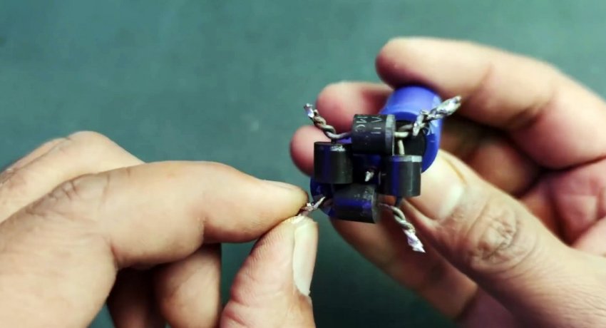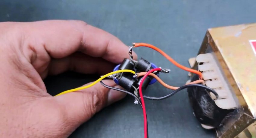 Блок питания тоже собран «на коленке». 4 диода составляют выпрямительный мост. Добавлены фильтрующие конденсаторы.