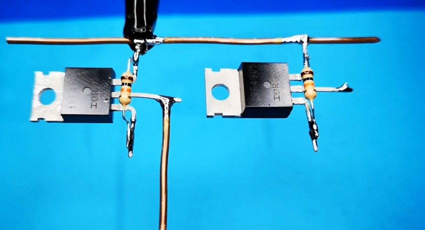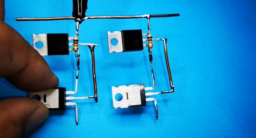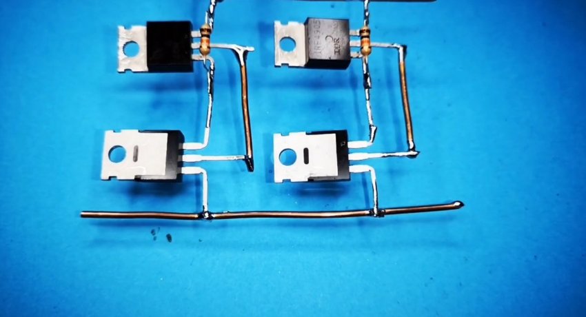 Далее припаяем нижний ряд транзисторов. Для удобства включения перевернем их.