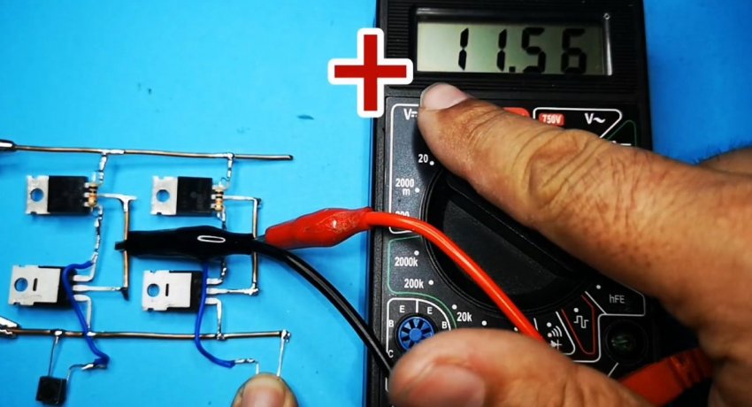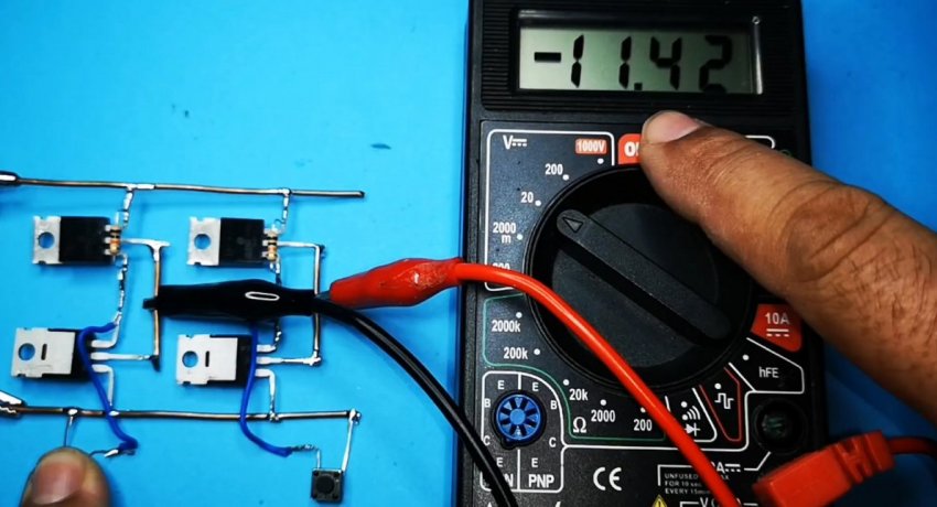 Полярность изменилась, значит схема работает. Пробуем с электромотором.
