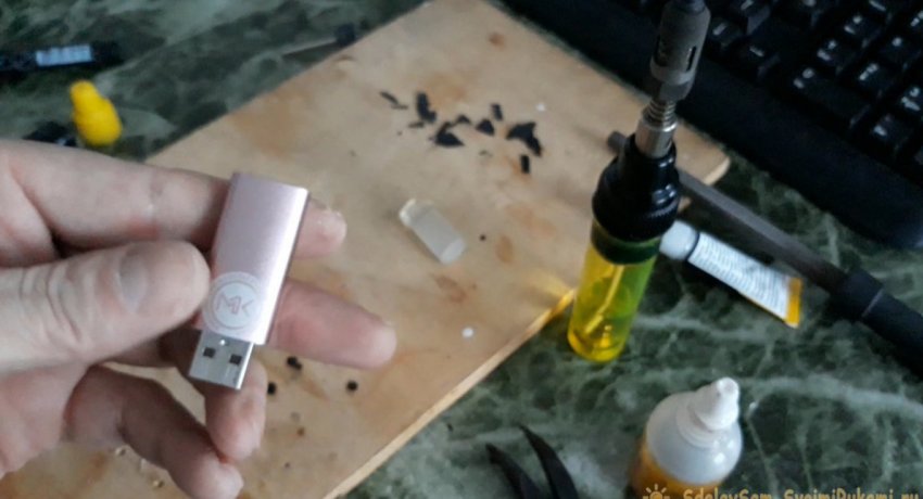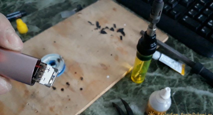 Только внимательно следим, чтобы клей не попал на контакты разъёма и штекера... Как можно увидеть в видеоролике, зарядка идёт, а передача данных отсутствует. Этот переходник чисто физически не позволит подсоединиться к Вашему устройству посредством USB. Его можно везде брать с собой – он маленький и компактный, и подойдёт к любому USB кабелю. Заряжать через него можно не только телефоны, но и плееры, и подключать питание для жёстких дисков, и т.д. Таким же образом, можно сделать и другие, похожие переходники, с нужными Вам штекерами и разъёмами.