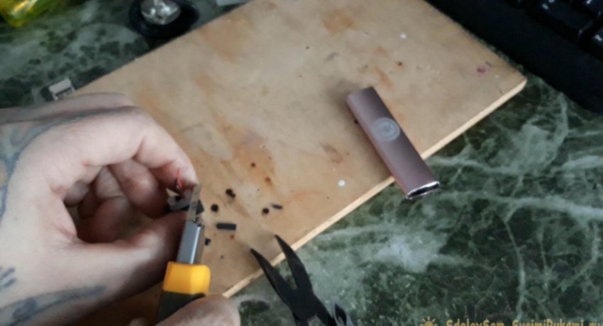 Теперь подготовим корпус. Я взял алюминиевый корпус от одноразового электронного испарителя – как раз по размеру!