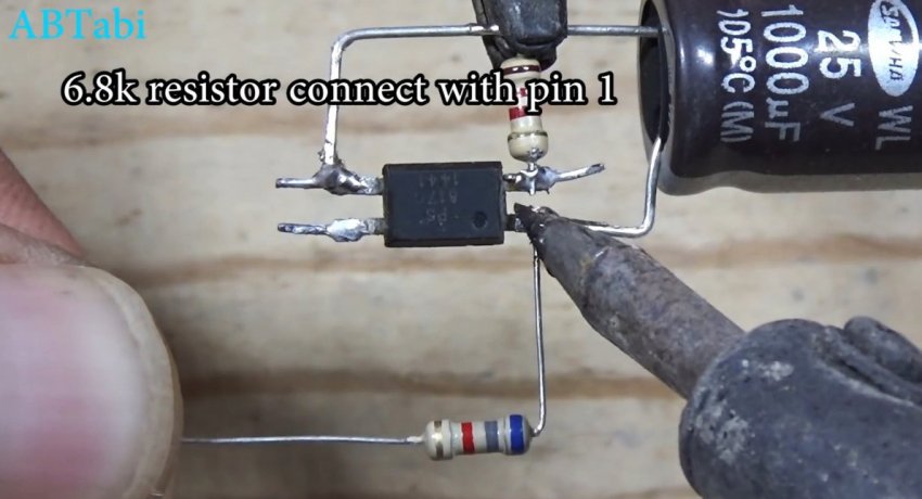 Берем конденсатор из той же платы или большей емкости и припаиваем к 1 и 3 выводу оптрона.