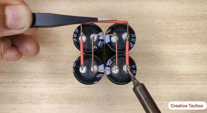 Первым делом спаиваем параллельно все 4 конденсатора.
