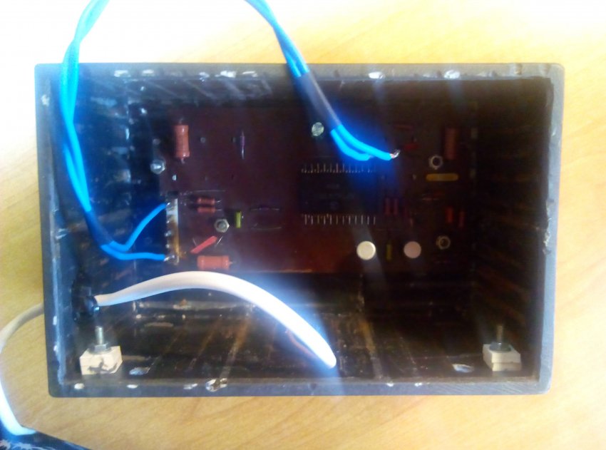 С фасада поставил штатное зелёное стекло с гнёздами под кнопки, прослойку (пластик 3мм и текстолит 2мм) плюс вырезанный сектор из оригинала приёмника (чтоб не рисовать заново маркировку) и на 6 шурупов зафигачил. Главное, чтоб ни один болт не касался контактов))) Штуцер для силового шнура взял из прибора сигнализации (есть доступ). А!!! ножки забабахал из каких-то резинок, которые 4 штуки уже года 3 валялись в пакетике и всё никак не находили применения))). Фото прилагаю. Последовательность: приготовления - любая; сборки - логическая.