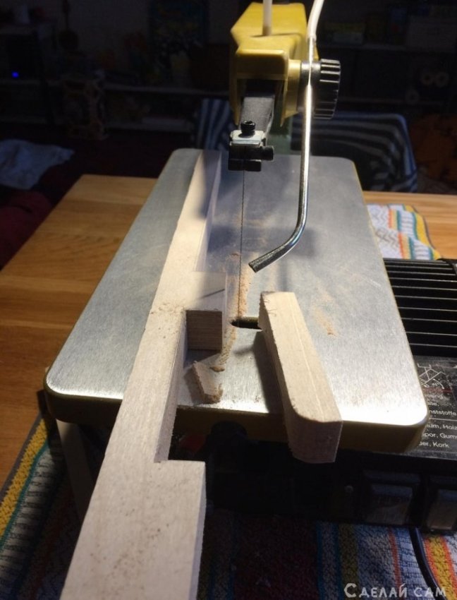 Для распила используем лобзик. Обратите внимание, после распила, необходимо шлифовать края.