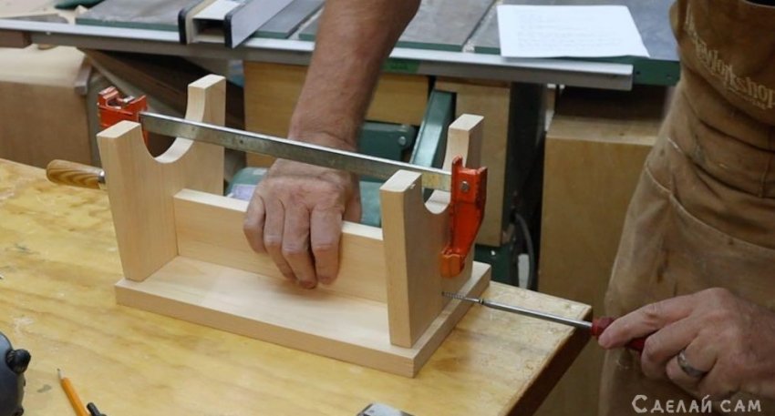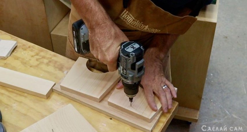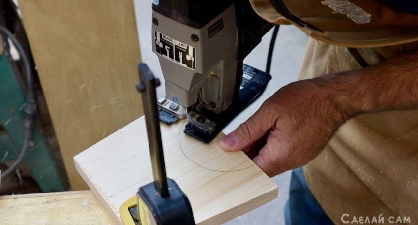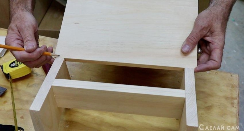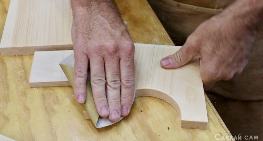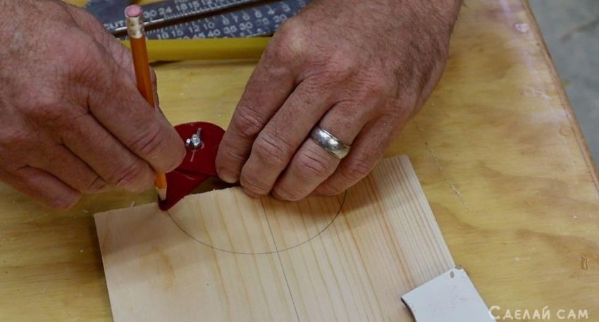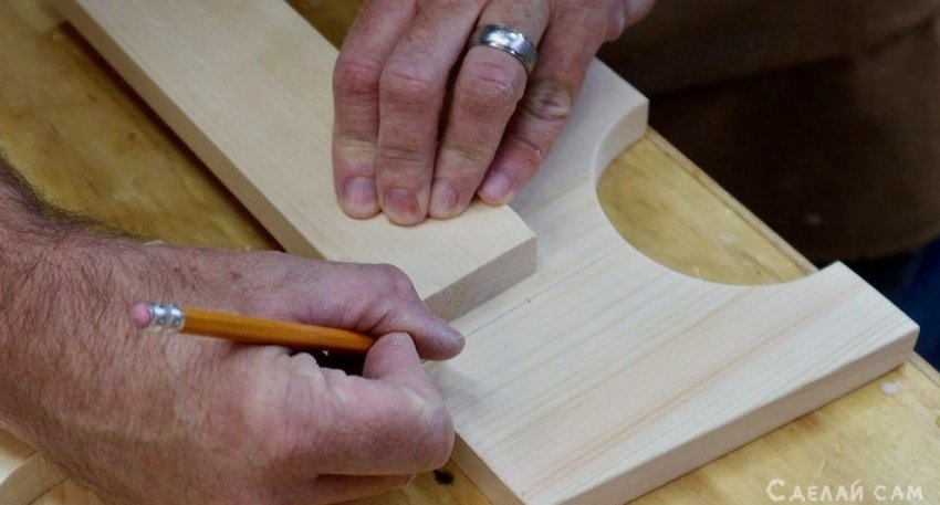 На боковинах, обрисовываем полукруг, для прорези ножек.