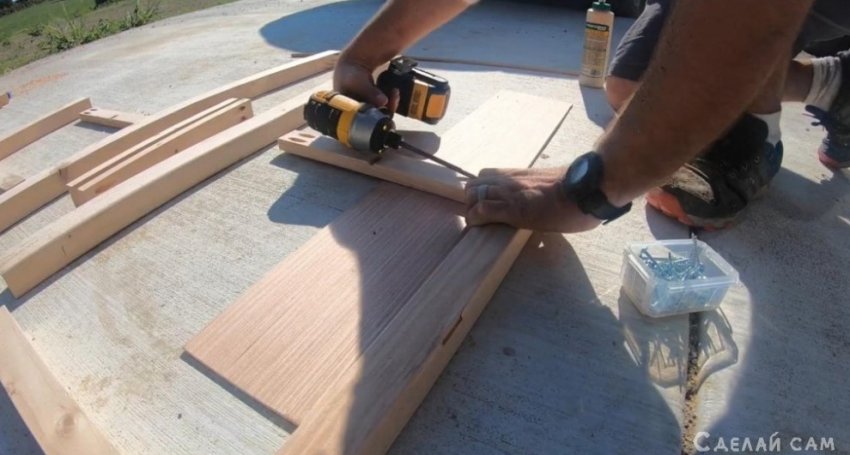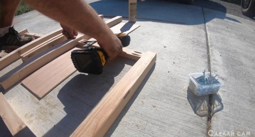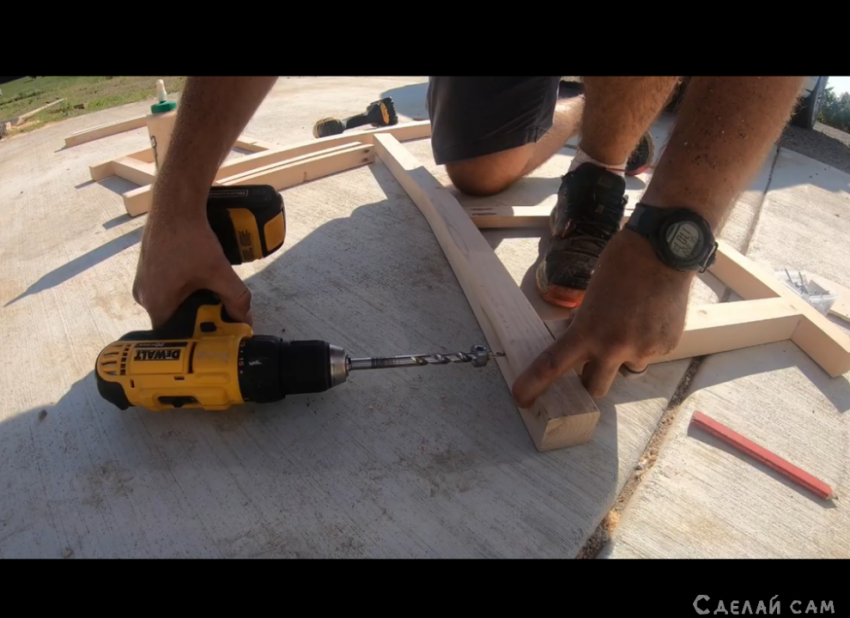С помощью насадки на шуруповерт делаем зарезы под соединения.