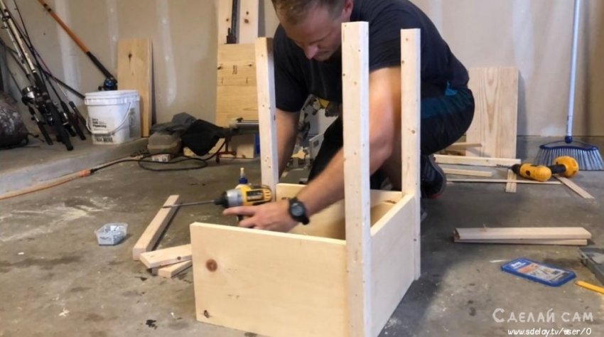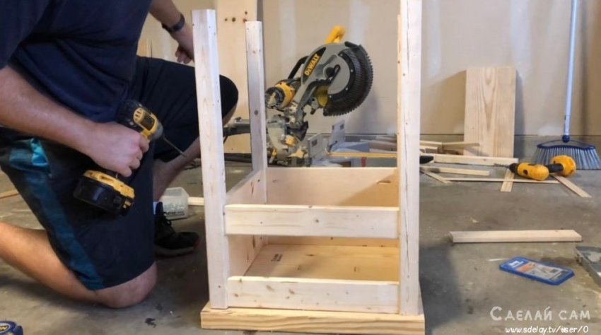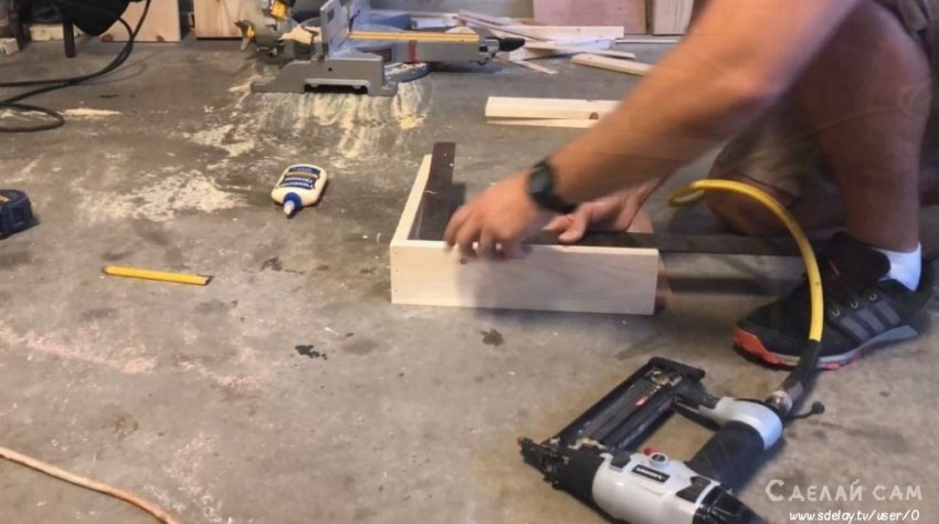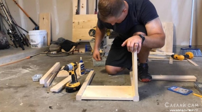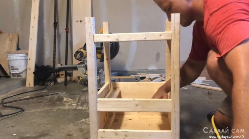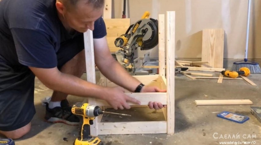 Третью сторону делаем из двух реек, для того что бы позже, сделать выдвижную полку.
