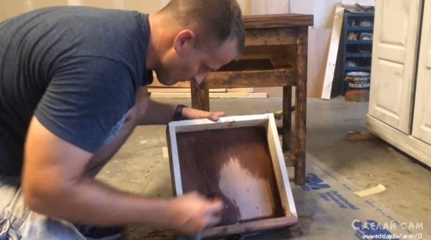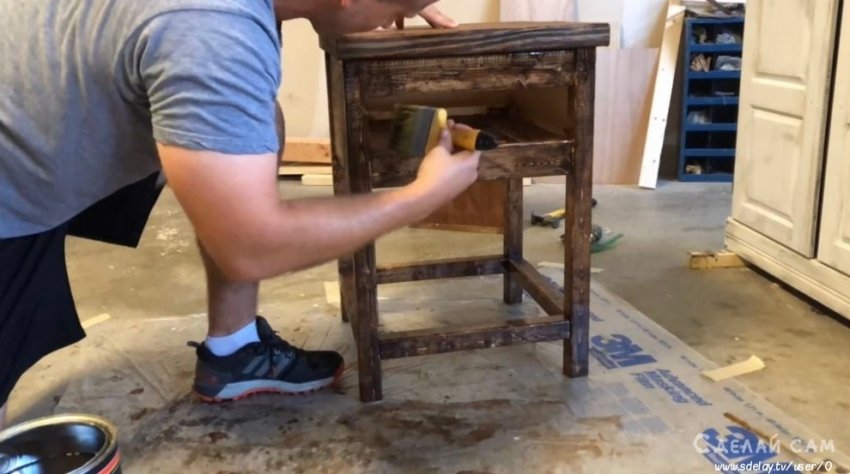 Шлифуем поверхности. Покрываем все морилкой, после - лаком.