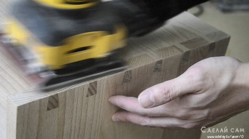 Собираем итоговую конструкцию. Шлифуем все шлифмашиной.