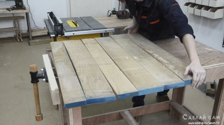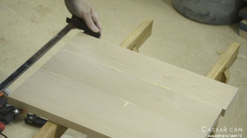 Изготавливаем деревянный щит. Для этого склеиваем доски, после чего шлифуем их и подготавливаем к дальнейшим манипуляциям.Всего нужно сделать пять деревянных плит.