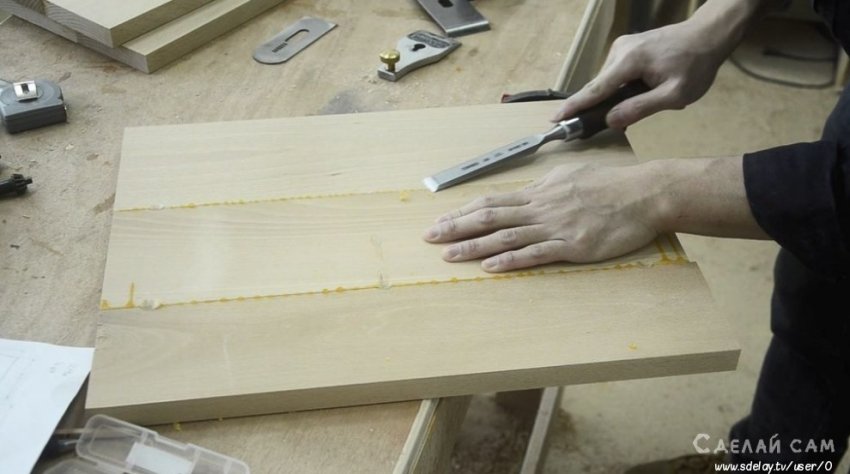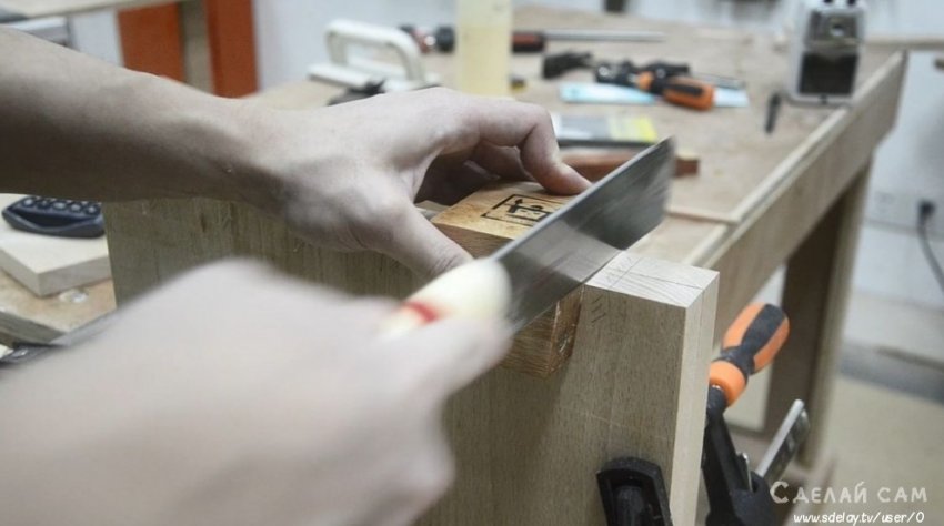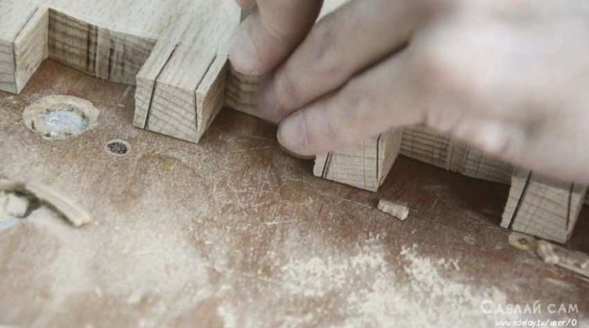 Проделывать посадочные места достаточно просто. Для этого прорезаем ножовкой две стороны, после чего просверливаем отверстие снизу. Далее стачиваем неровности.