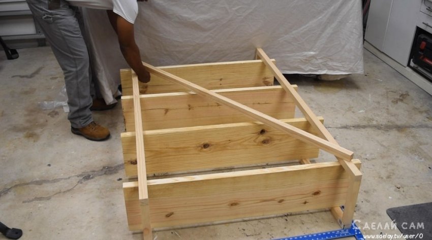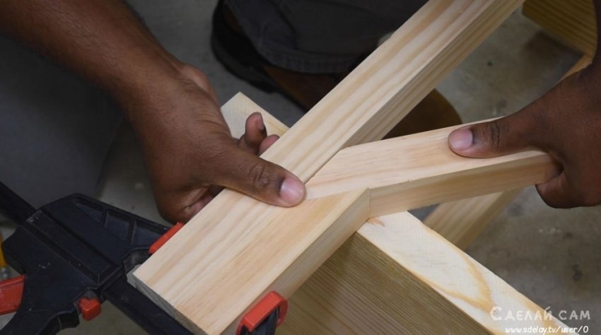 В брусках просверливаем отверстия по местам крепления. Крепления будут внутренними.