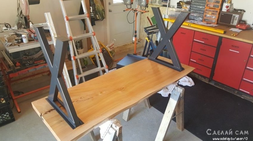 Все началось с покупки нового большого 65 дюймового телевизора. Вешать на стену телевизор я не хотел, а подходящего столика в магазине найти не получилось. Вот собственно я и решил смастерить его своими руками. У меня как раз на даче, в гараже был спил большого дерева, цельной плитой. Вещь как мне когда-то казалось, бесполезная. Как это я еще не соблазнился порубить его на дрова, но видимо что-то внутри меня знало, что спил мне еще понадобится.