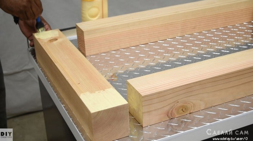 После того, как места креплений заглушены, прошлифованы и готовы к дальнейшей работе, покрываем кресло лаком.