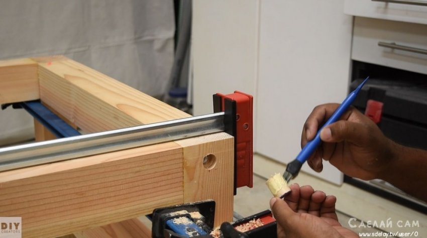 Соединяться все части между собой будут с помощью деревянных мебельных колышек.