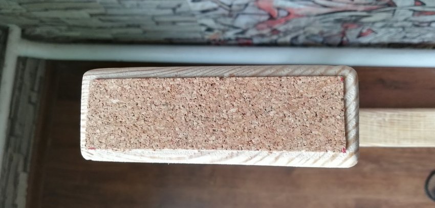 На ножки приклеил подложку из коры пробкового дерева, чтобы они не царапали напольное покрытие.