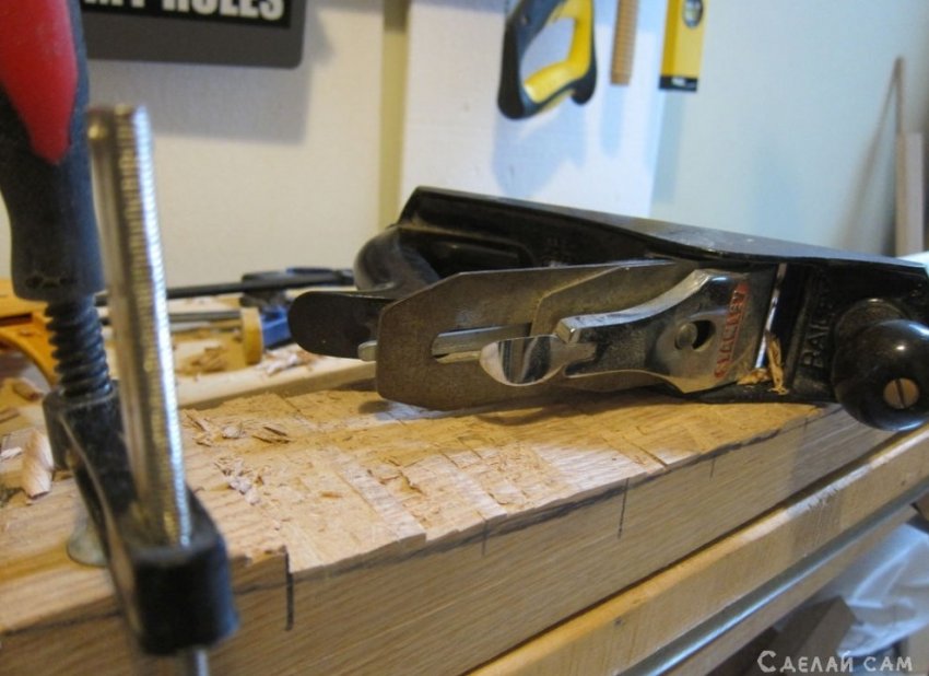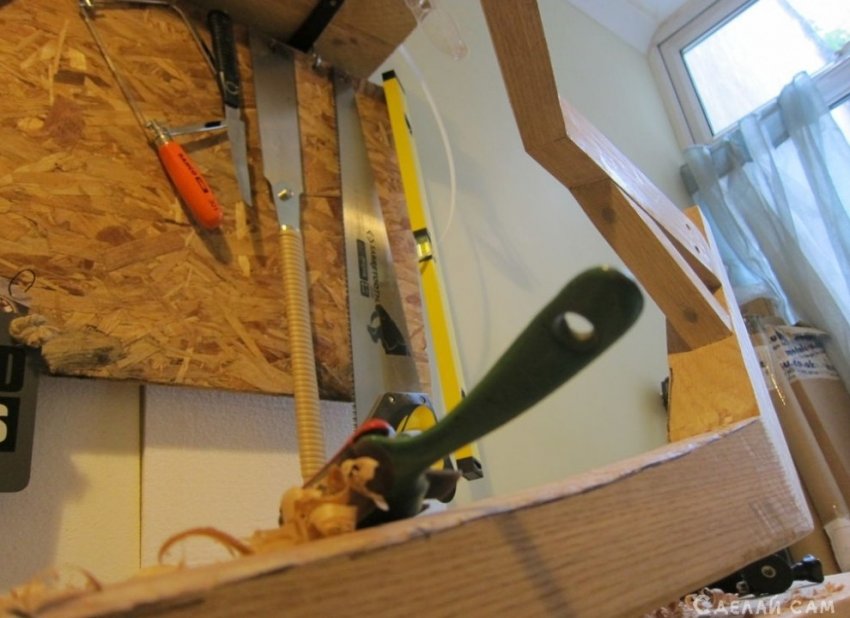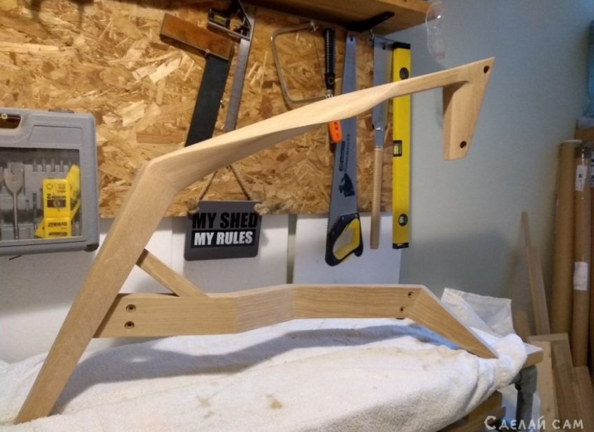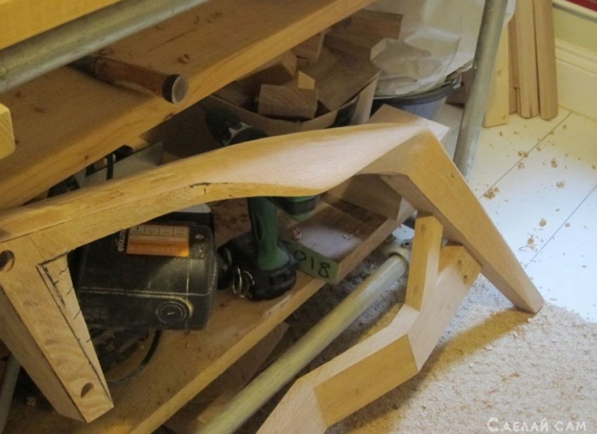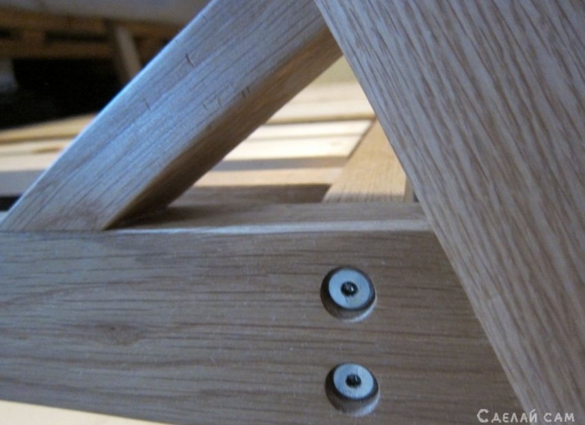 Из материала, я использовал белый дуб, планки из сосны, гайки М6, клей, лак.