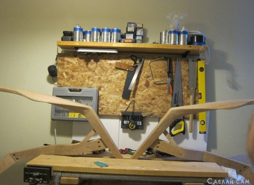 Основная сложность - изготовление опорных ножек. В остальном - все достаточно просто и логично. Что касается подушек, ту все несколько проще. За основу берем обычные пенные плиты. Продаются в магазинах с мебельной фурнитурой и т.д.