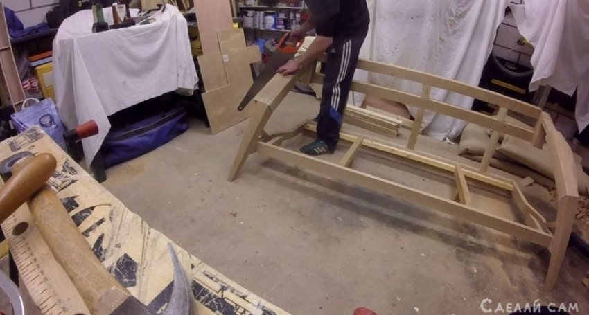 Ну и финальный этап - сборка. Собираем диван, с использованием винтов, клея по дереву.