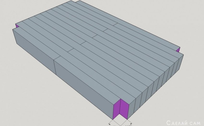 Далее, по бокам, с четырех сторон срезаем по одному квадратному кусочку, формируя посадочное место для ножек.